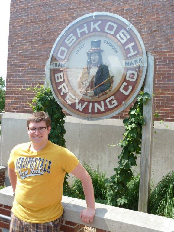 Yours truly at the Oshkosh Public Museum by the Oshkosh Brewing Company logo