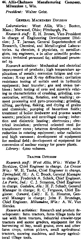 Google Books never fails to amaze me. Found this great article while doing a search. This lists the research laboratories and important people (circa 1950). Click here for a complete list of companies.