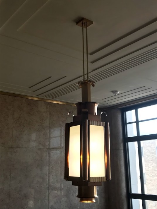 It’s been two years since the quest began to bring this original Winnebago County Courthouse light fixture back home. My former supervisor and friend Isaiah and I have a mutual appreciation for architecture and history. Our courthouse is a beautiful example of the Depression Moderne style from the 1930s. I was fortunate in that he put me in charge to clean some of the bronze decor in the building. I have spent days on ladders and scaffolding taking the cornices down to clean and then put them back up. I’ve also cleaned the bronze door hardware, elevator doors, and sign holders. The building is filled with these intricate details. When we learned about a light fixture that had been removed from the building years ago our goal was to bring it home.