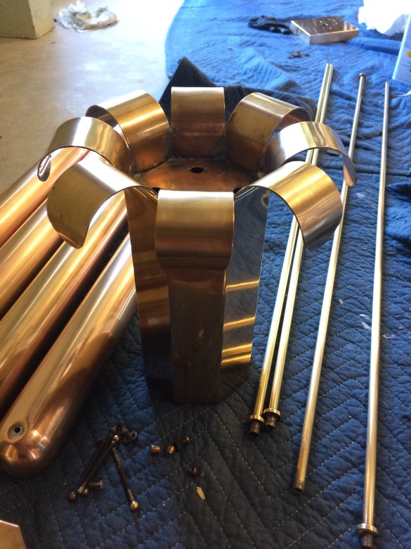 The courthouse light came down in August 2016 and was sent to the Winnebago County Facilities and Property Management shop. I was assigned to restore the light fixture. I took pictures of everything on the light before and while I disassembled it. I carefully stripped, cleaned, and applied a new coat of lacquer to the pieces and put it all back together. The electrician in our department rewired the sockets–all twelve of them. I spent many, many, many hours working on that light fixture. It sat in storage at our facility for several months before the big day arrived for it to be reinstalled.