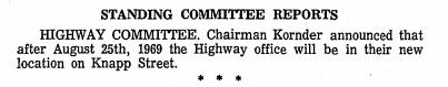 The final addition to the highway garage was an office building to house all Highway Department staff under one roof. Since 1938 the highway commissioner and other office staff were located on the first floor of the county courthouse. County services and staff increases over the years made for tight quarters in the courthouse. The county board approved a $204,661 project to build an office addition onto the eastern portion of the complex. Ground was broken in January 1969, and the project was completed by the end of August that year.