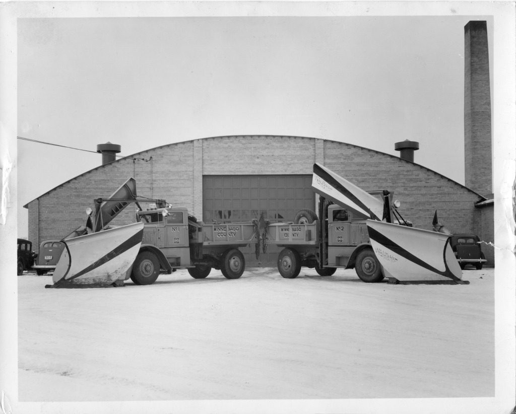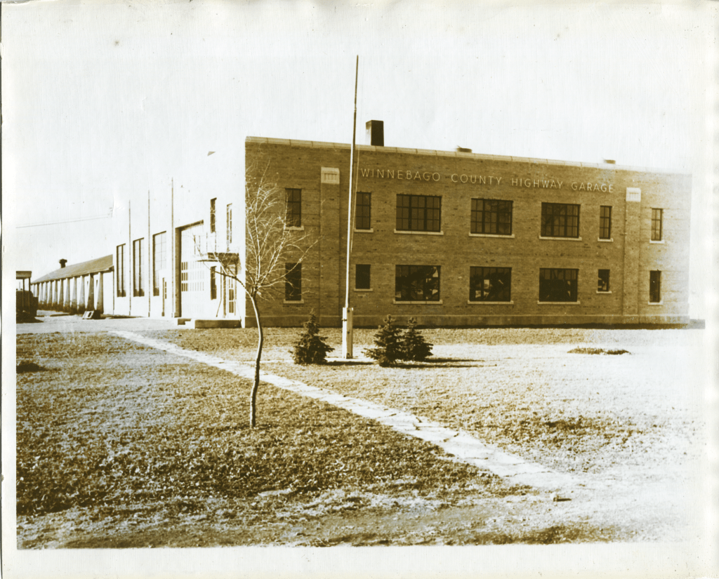 If I have not made it obvious, I work for Winnebago County as a maintenance technician and ensure our public buildings are running top notch. Besides learning new skills, I really enjoy learning about our buildings’ histories–especially our courthouse. Our department operates out of the former Winnebago County Highway Department shop, and I never really knew much of or looked into our shop’s past until recently. Our building was constructed in stages over the years–1938, 1940, and 1969.