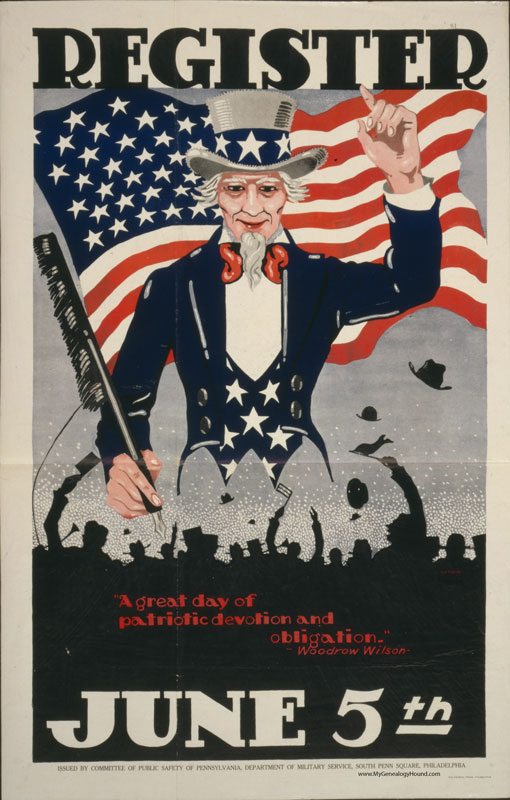One title of dishonor a person could be labeled during WWI was a slacker. Not only did it come with shame, but it could get a person in trouble with the law. In May 1917 Congress enacted the Selective Service Act of 1917 which initially required all men age 21-30 to register for the draft. Later registrations required those as young as 18 and as old as 45 to register.