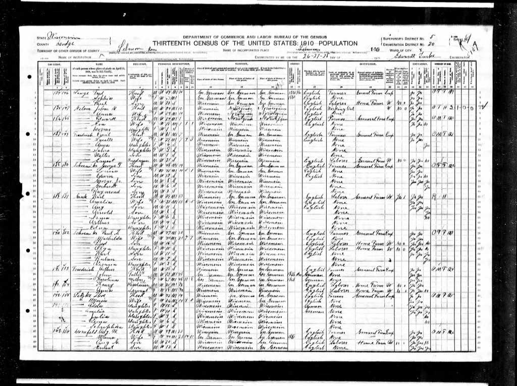 (1910 US Census-Town of Lebanon, Dodge County, Wisconsin.)