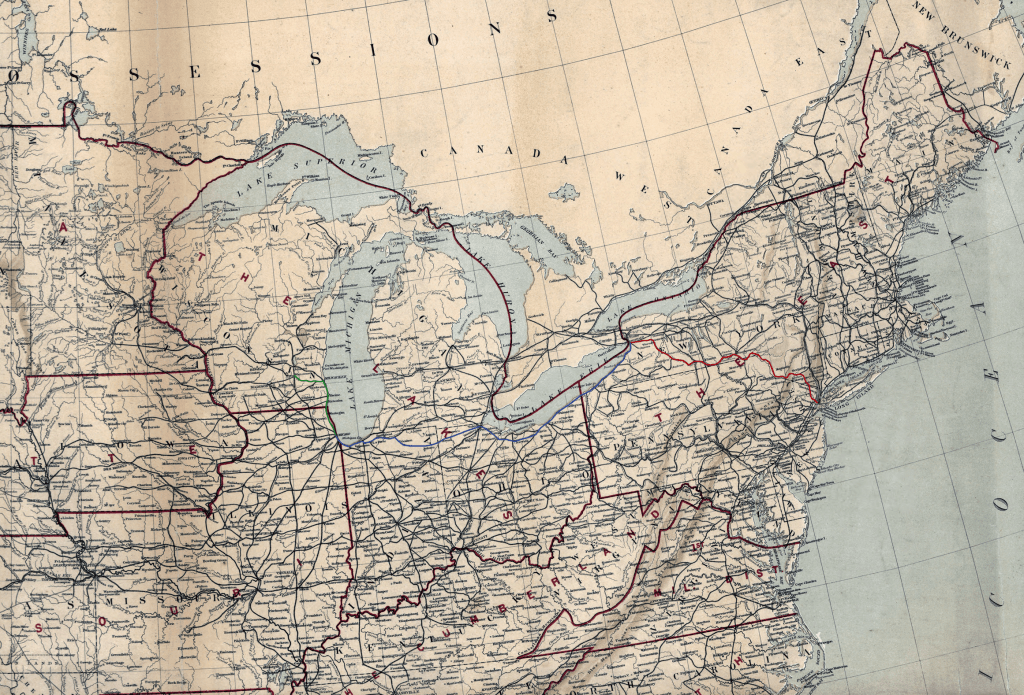 I have no ticket stub or other documentation, but I began researching railroads around the period they arrived to put together a possible overland route to Wisconsin. In the end, I took an old railroad map and traced out a possible route they took, and railways they could have traveled with.