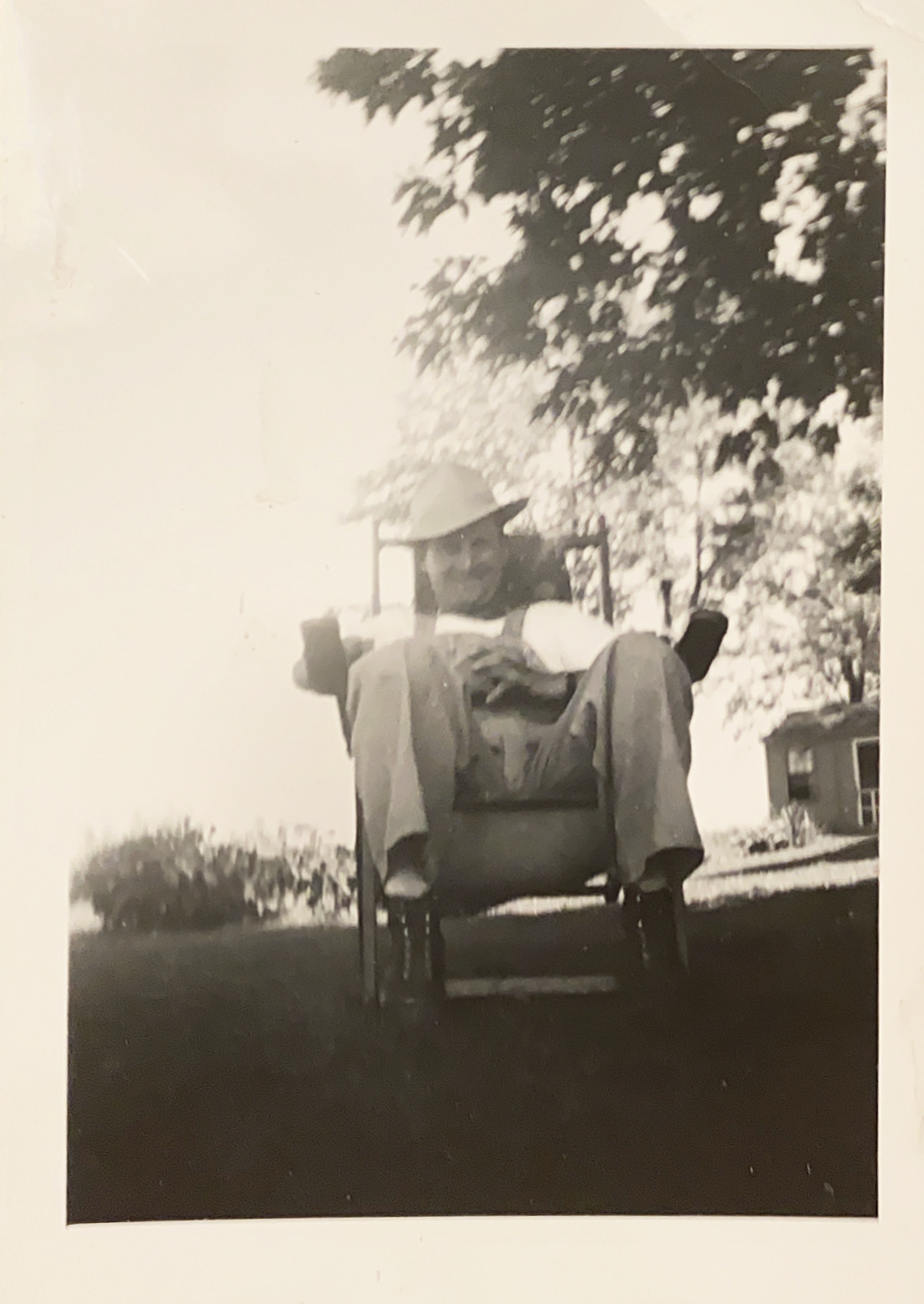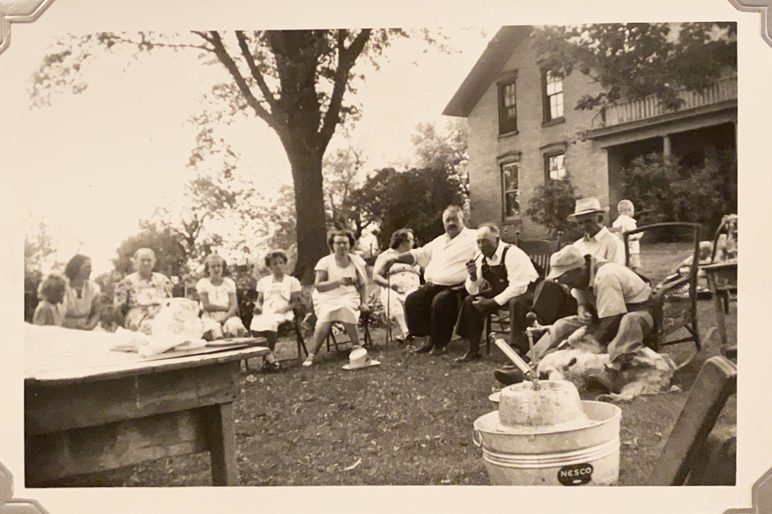 left to right– Granduncle Vivan Frederick, unknown, Great-Grandpa Hoeft, Granduncle Clarence Frederick, unknown, Grandpa Ken Frederick, Granduncle Howard Hoeft, Great-Grandpa Arthur Frederick, Unknown