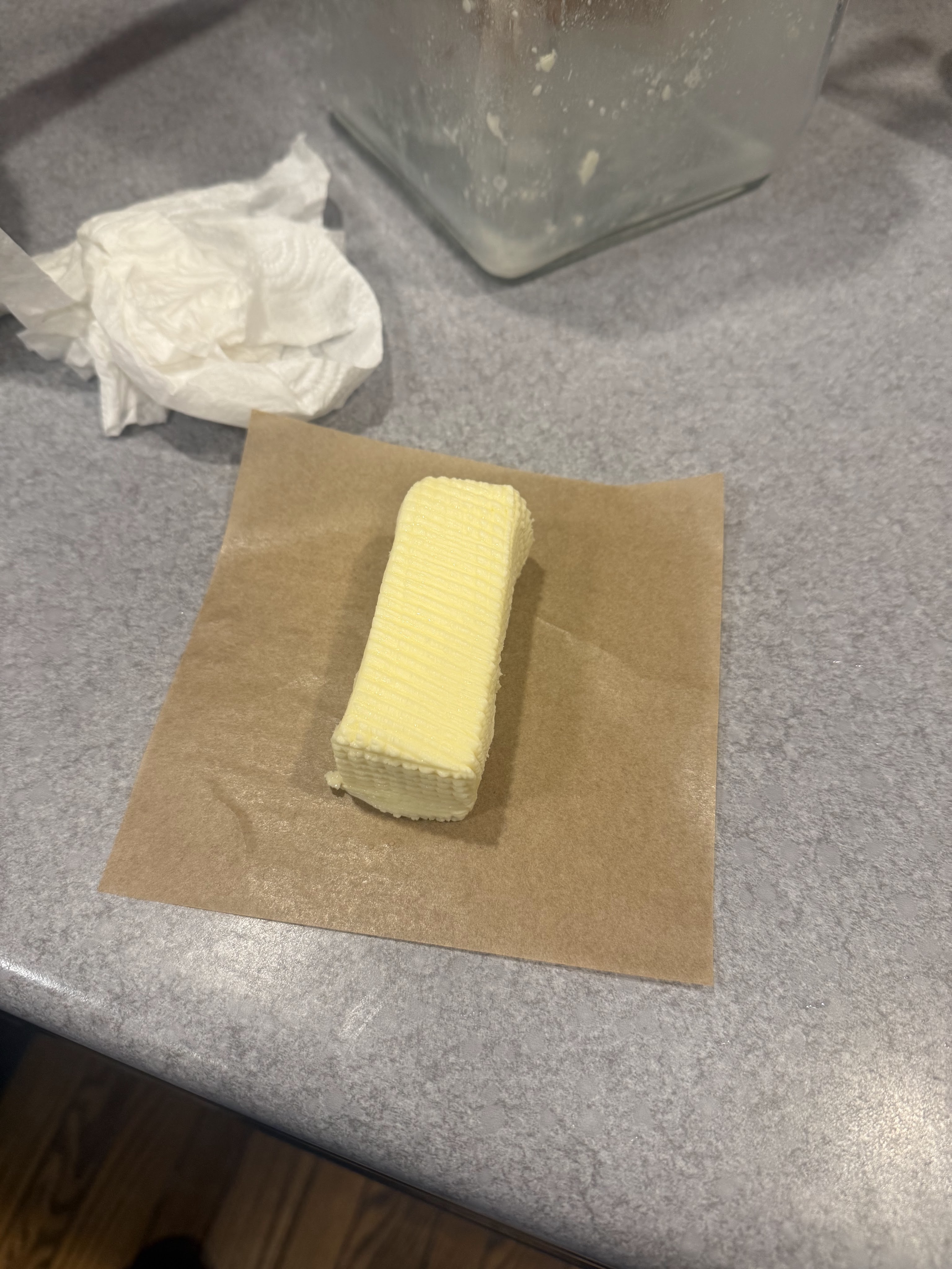 After about twenty minutes of churning, I suddenly had a hunk of butter flopping around in the jar. I drained off the buttermilk, rinsed and worked the butter, then shaped and packaged it. The first batch I left unsalted, and we’ve been using that for baking. The second batch I salted and shaped into a brick for spreading on bread.