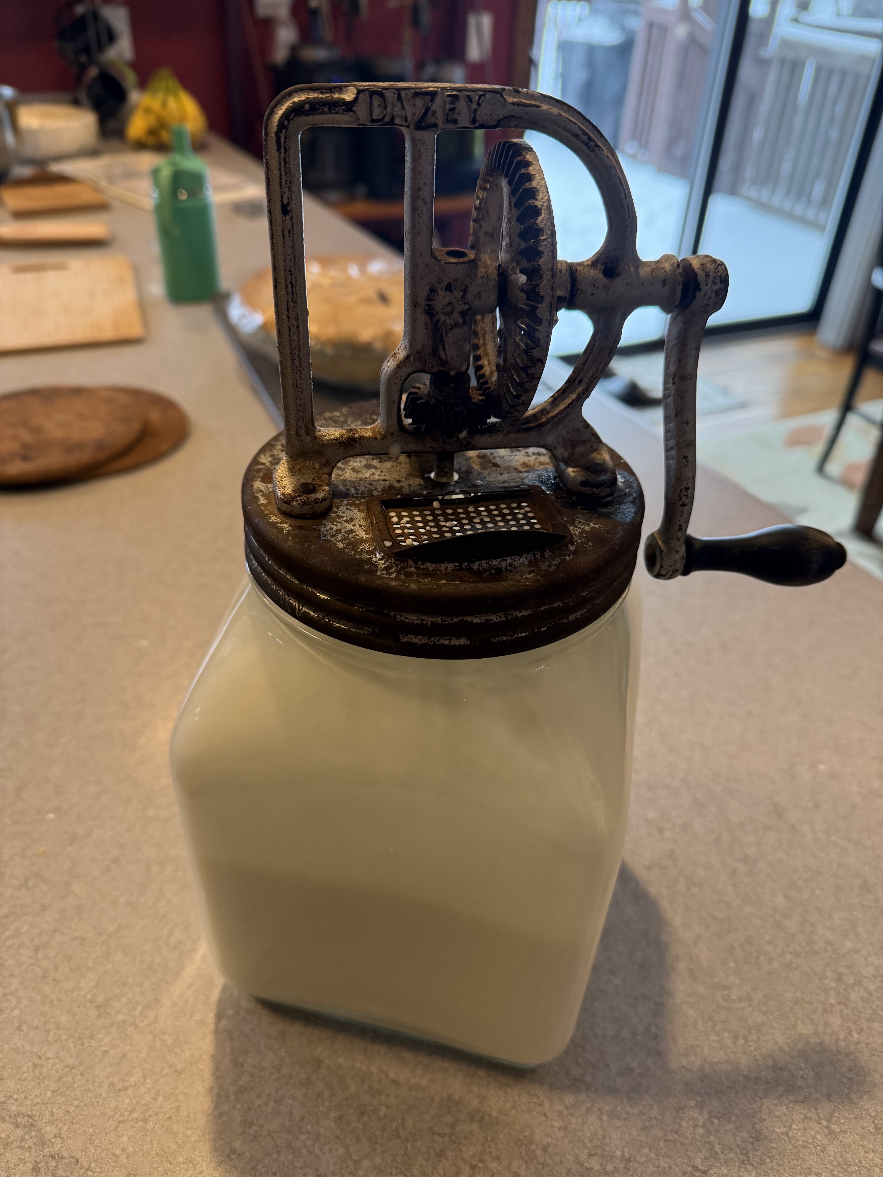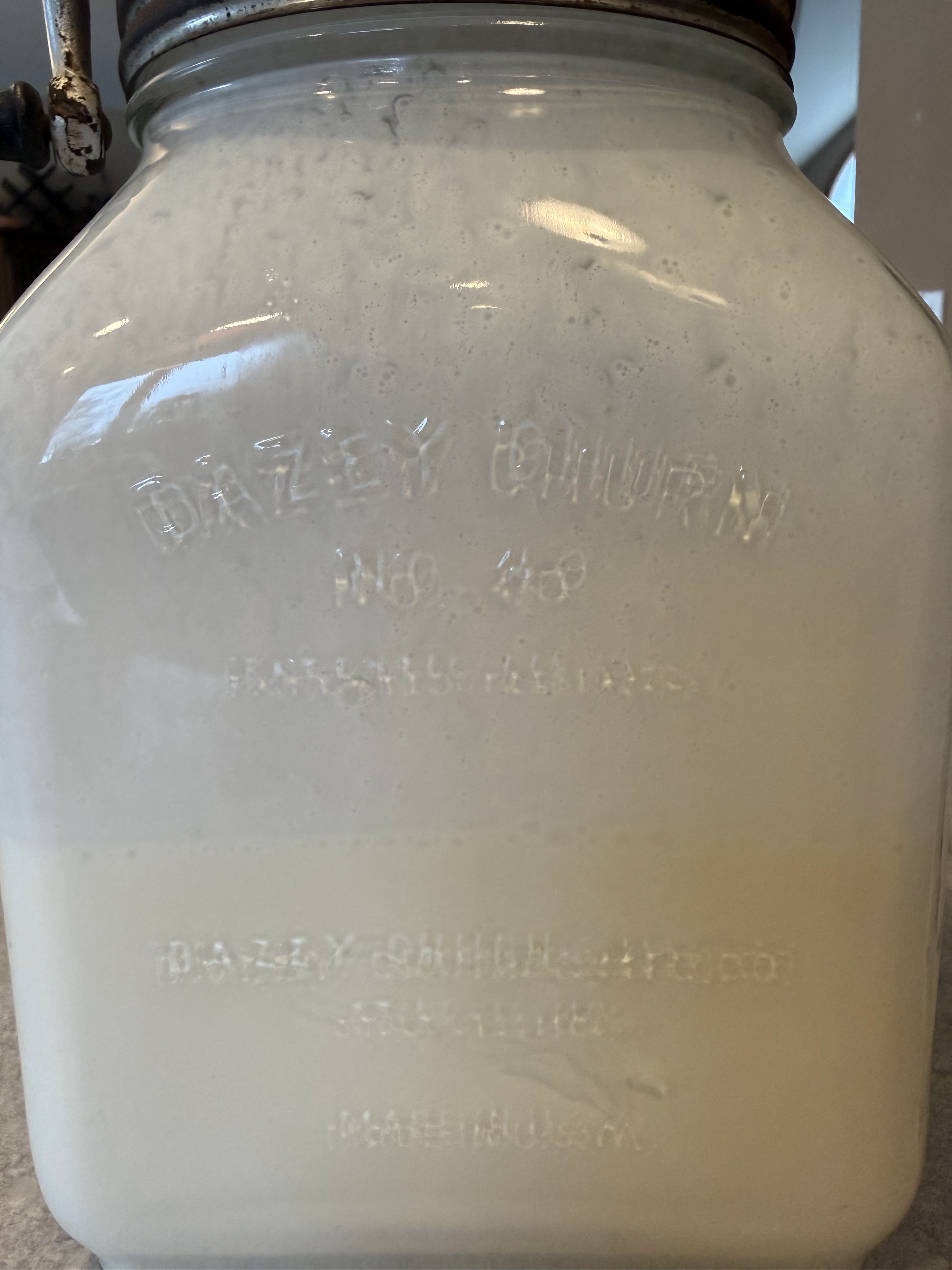 I made the decision to try making butter myself. I knew I wanted to use an old churn. I preferred it over buying something modern. I found a Dazey #40 glass jar churn. It was made by the Dazey Butter Churn & Manufacturing Company out of St. Louis. I picked mine up on Facebook Marketplace just a few minutes down the road.