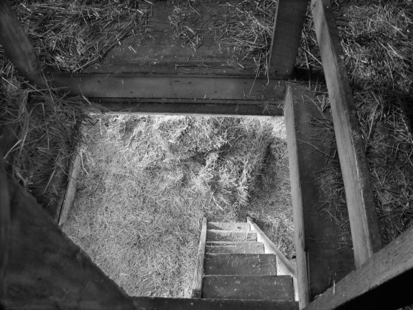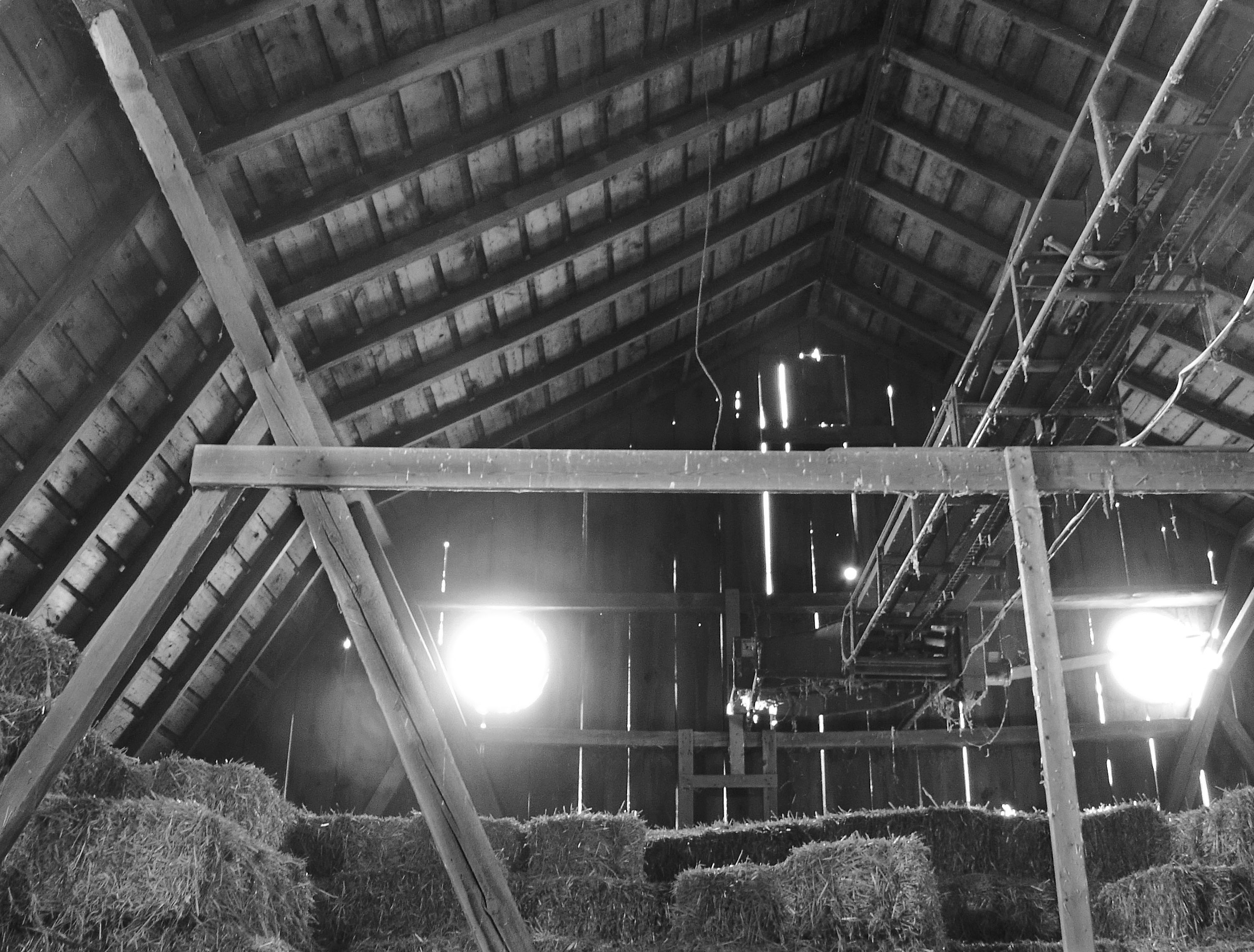 Hay and straw come up into the old drafty barn via an elevator before finding a resting place in the haymow.