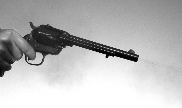 Abby Frederick discharges a round from a .22 caliber Ruger pistol into a target.